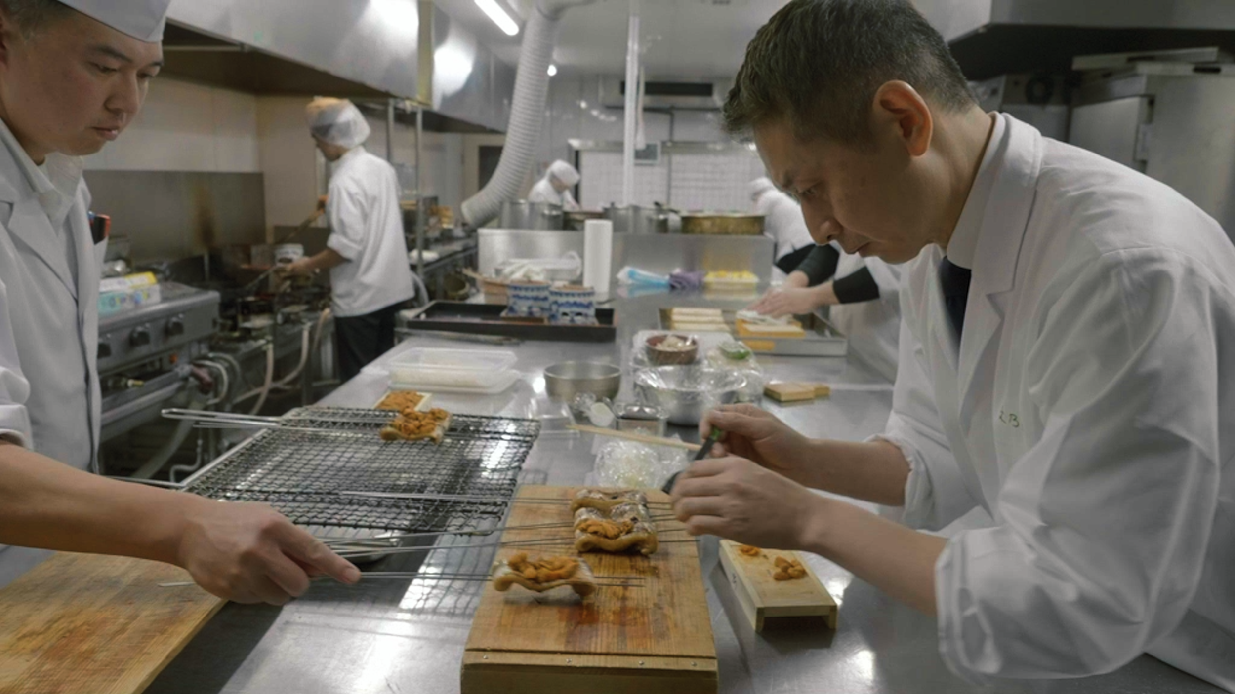 The film revolves around Takuji Takahashi, a third-generation owner/chef, who is a forward-looking maverick with contrasting visions. While deeply respecting the cuisine that goes back hundreds of years, he is always exploring new ways to elevate this cuisine. Over 20 years, he has practiced Noh, the oldest form of Japanese theater. Studying Noh has taught him how to simultaneously be intense and calm. This is a mental skill he uses to create delicate and creative dishes while managing the high-pressure kitchen environment. He is also a sommelier working with a Japanese wine maker to produce wine that complements Japanese food.